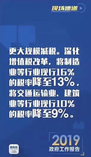 2019年3月5日上午喜讯传来,政府工作报告明确宣布我国的增值税税率中的16%的税率将降为13%。